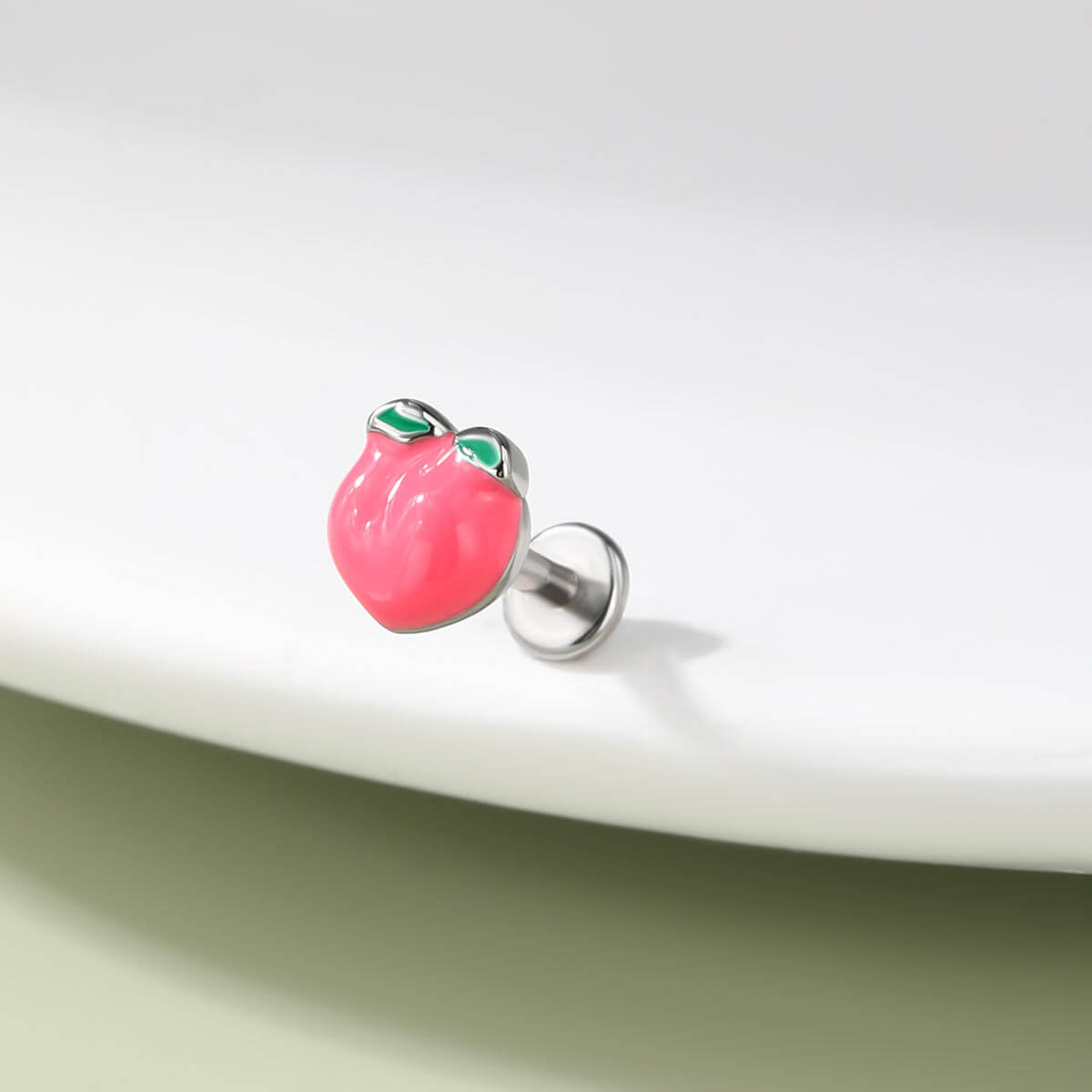 Developed by Oufer in collaboration with Roly's innovative design concepts, the detailed design of the peach cartilage stud, with its soft curves and realistic texture, exudes a sense of charm and playfulness.
