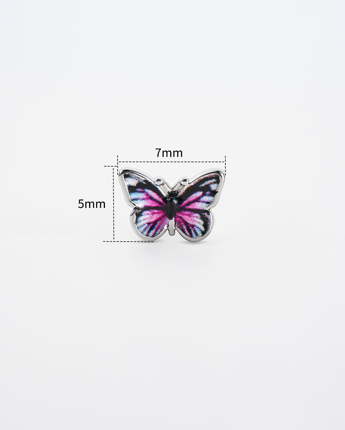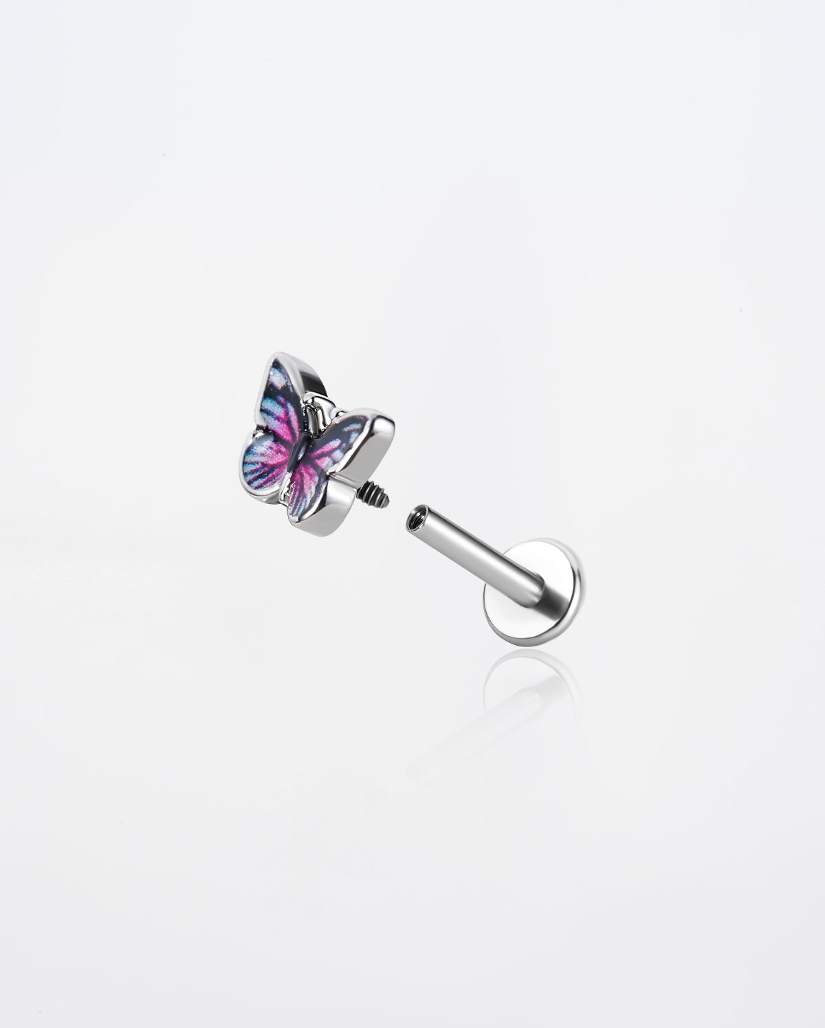 This exquisite creation is crafted with precision and designed to catch everyone's attention. Its internally threaded design ensures a smooth and hassle-free insertion, reducing any discomfort during the piercing process. Gone are the days of struggling with external threads! The centerpiece of this enchanting labret cartilage stud is its stunning butterfly decoration. Delicately crafted, the butterfly adds a touch of whimsy and elegance to your look. Its intricate details and vibrant colors make it a true eye-catcher, sure to spark conversations wherever you go.