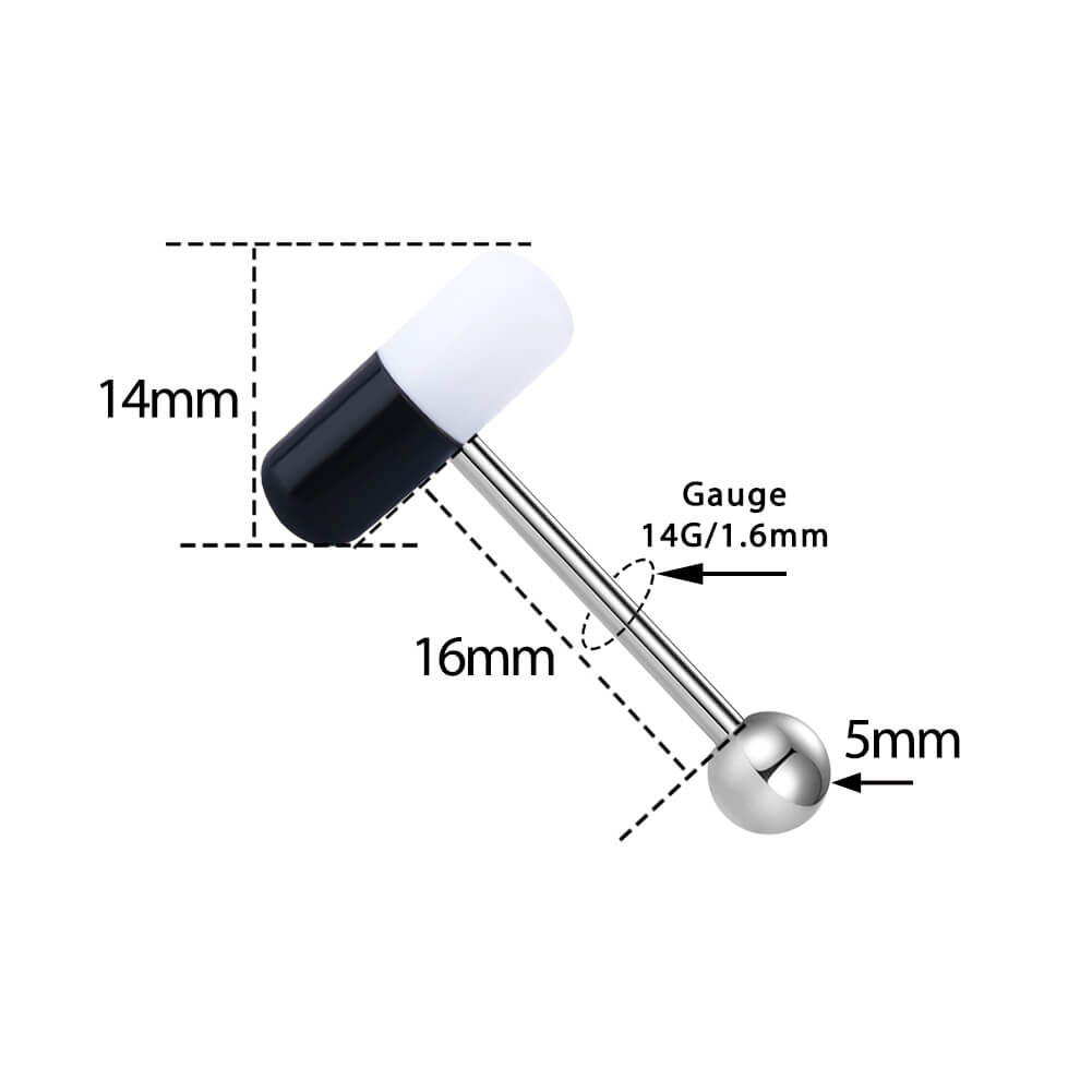 You can get 10PCS different colors pill tongue ring at only $9.99! The pill design is so unique, and definitely eye-catching when you talk with ppl. The barbell is made of high-quality 316L stainless steel, safe for your tongue piercing.