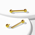 Enhance your bridge piercings with such a classic and simple internally threaded gold bridge piercing barbell. They feature removable and internally threaded 3mm titanium ball ends, which are comfortable for daily use, and also the safest choice for bridge piercing.