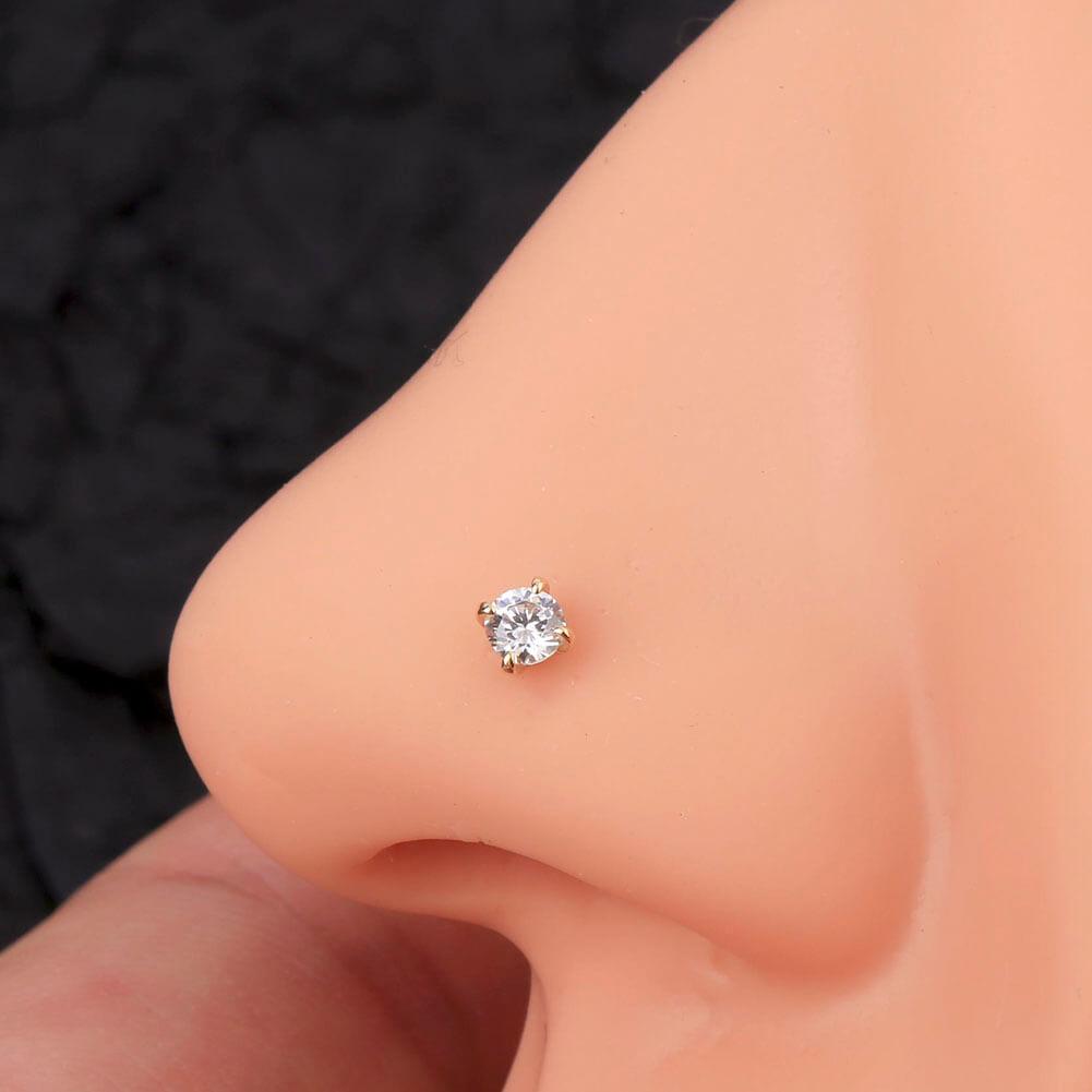 The round CZ in the nose stud adds a touch of elegance and sophistication to the design. The 14KT gold material used in the nose stud is durable and long-lasting, making it a good investment for those who want a high-quality accessory. The classic design of the nose stud makes it a versatile accessory that can be worn with any outfit. The straight bar length of 7mm is a standard size that fits most people's noses comfortably.
