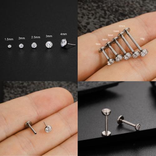 Oufer Minimalist CZ Titanium Push Pin Nose Stud Lip Stud Labret Piercing