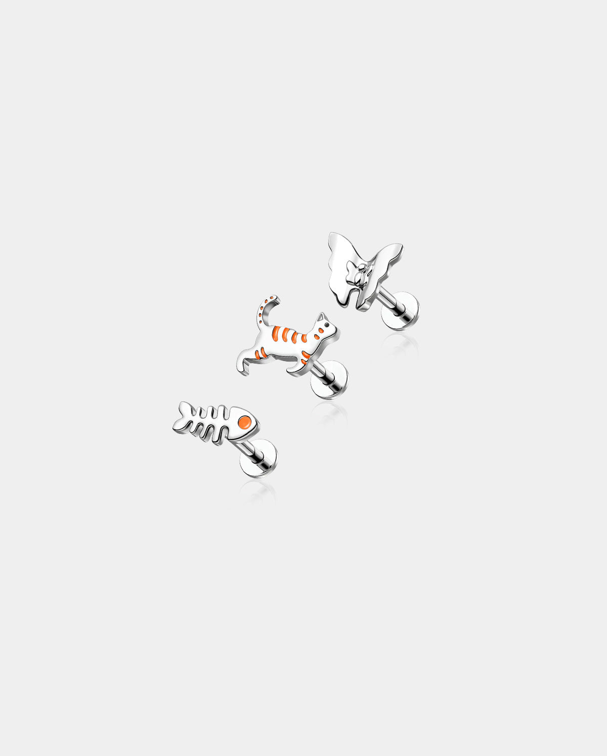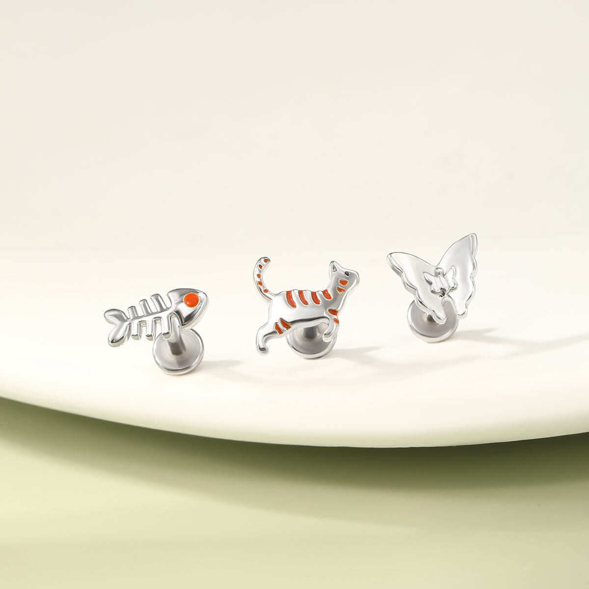 Oufer X Roly Cat Fish Butterfly Internally Threaded Cartilage Studs Set
